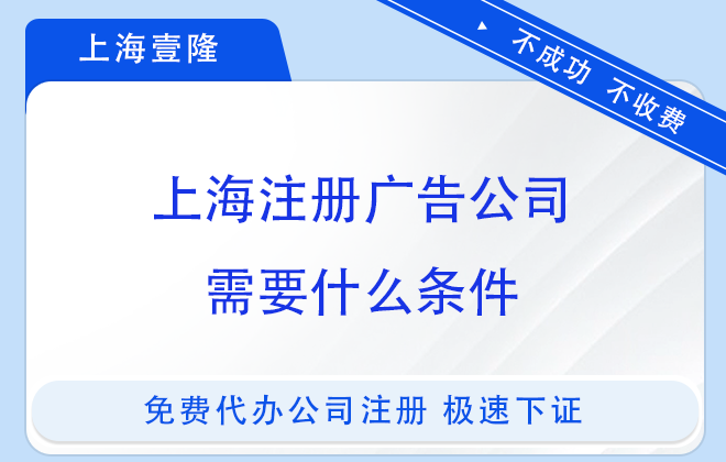 若您咋上海注冊(cè)廣告公司,但是其流程還不太了解,可以交給上海壹隆代辦,15年代辦服務(wù)經(jīng)驗(yàn),無需本人到場,快至1天拿證,歡迎咨詢!